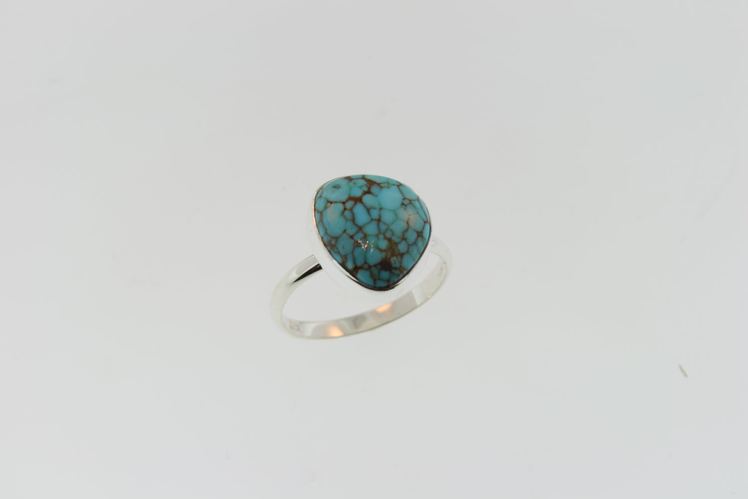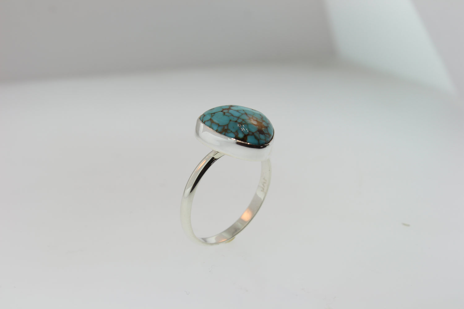 The quality of Blue in this American Turquoise is amazing. Paired with Sterling Silver in a classic setting, this is a ring for everyone's jewelry collection.